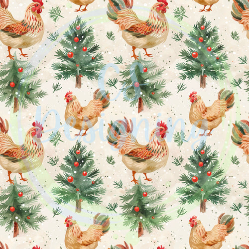 Christmas chickens seamless patternh
